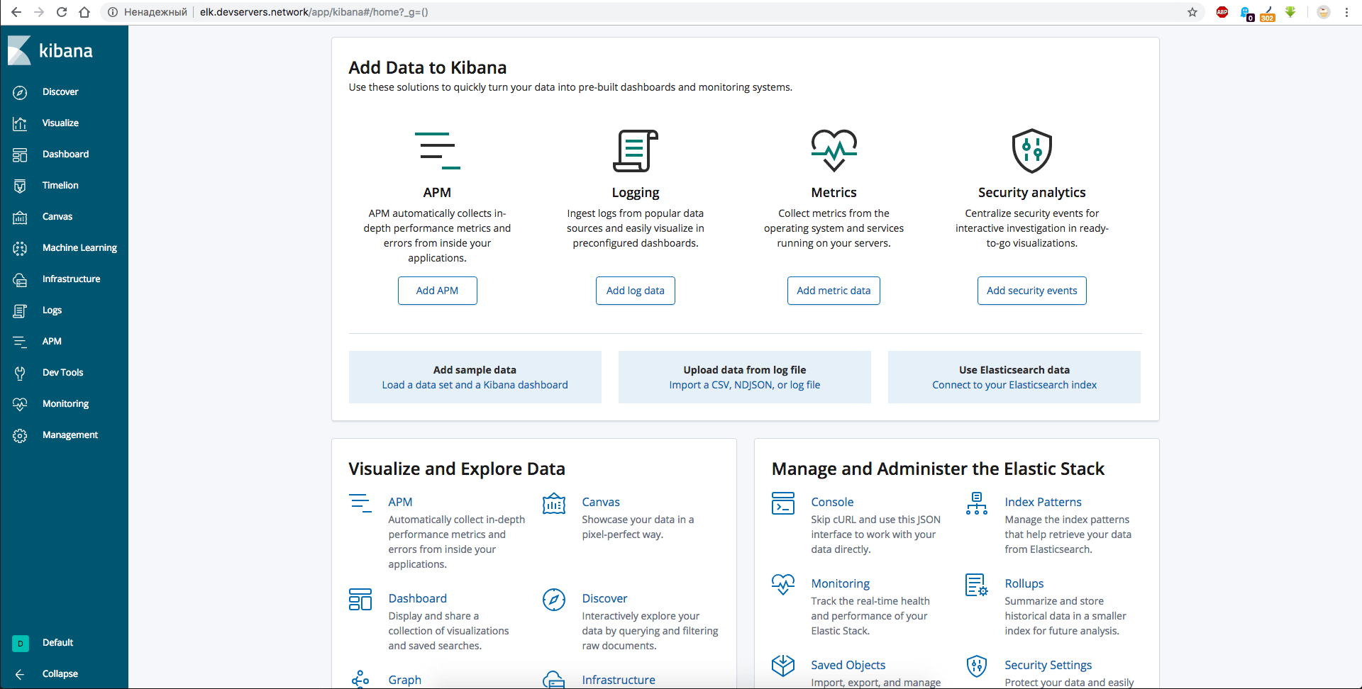 Редактируем настройки Kibana